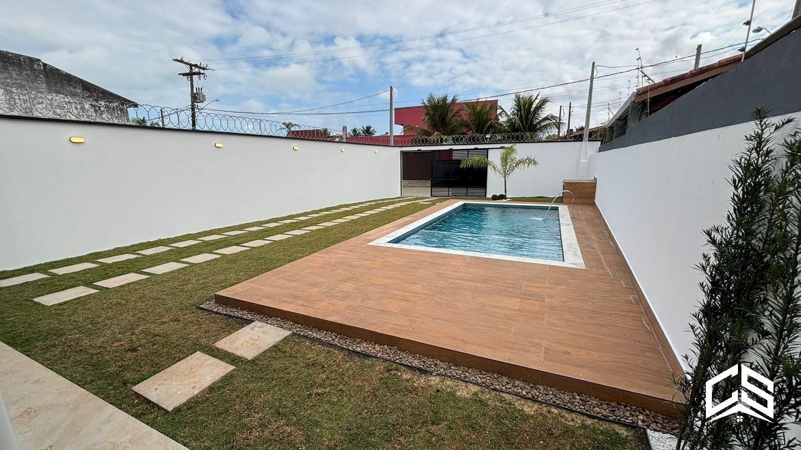 Piscina com cascata e prainha