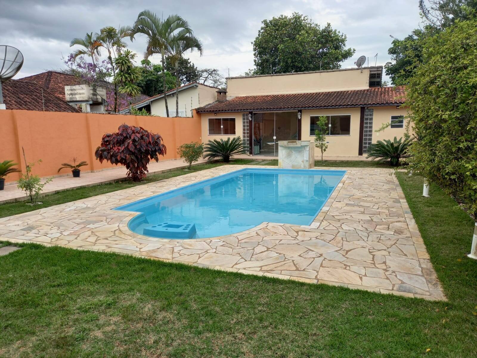 Piscina linda na entrada com 8 x 4 no total 32 metros quadrados, com cascata
