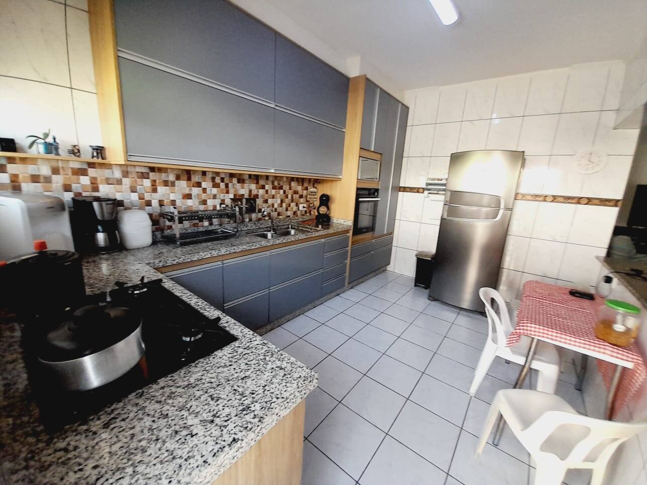 Parte de baixo: 2 dorm ,sendo 1 suite,cozinha com armário embutidos,sala de jantar,sala de estar,banheiro social, Parte de cima: 3 suites, 1 com hidro e sacada, Quintal: para 6 carros, piscina,jardim, Edicula :com banheiro,lavanderia coberta,em cima da edicula,sala de jogos,com banheiro Churrasqueira, 1 forno a lenha, e fogão a lenha . aceita propostas...