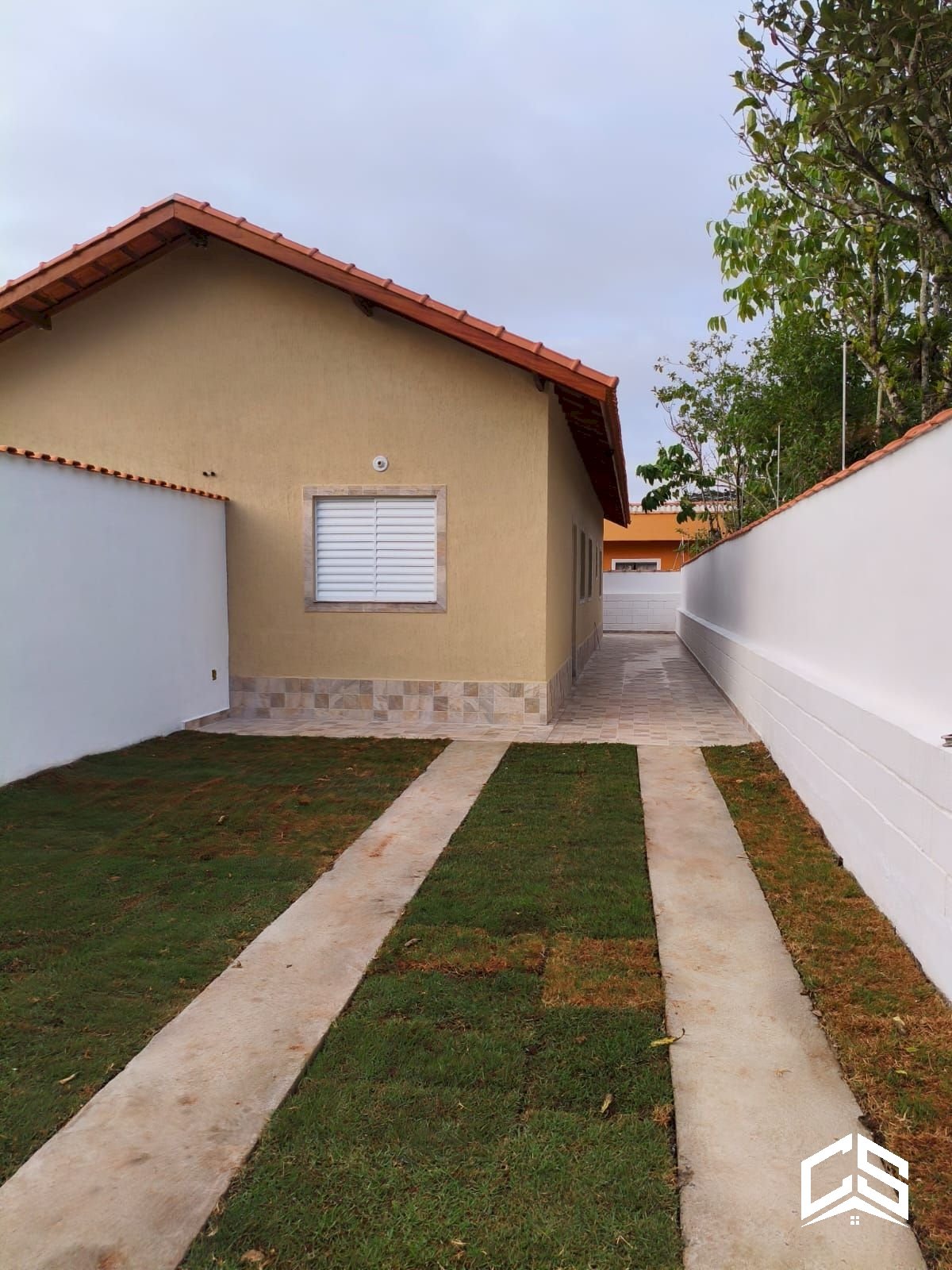 Garagem descoberta 2 carros Sala Cozinha Wc social 2 quartos Área nos fundos com tanque Espaço para piscina Pia ,balcão e lavatório de ardosia Portas e portão madeira Janelas e Vitros aluminium 600 metros da rodovia e 1.600 metros praia Pronta para financiamento ou avista