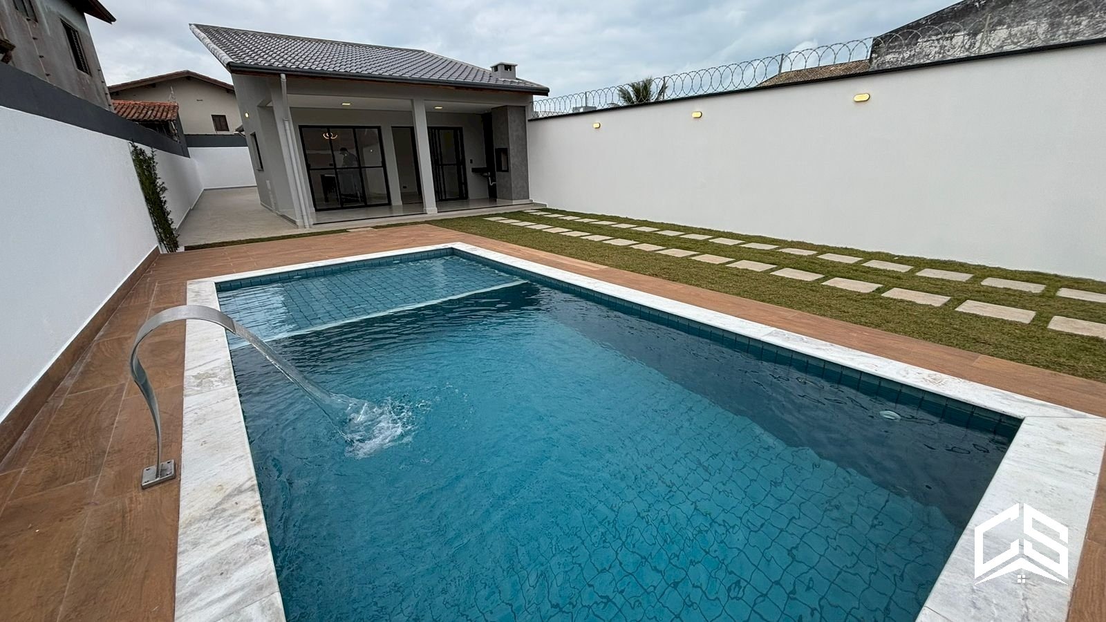 Piscina com cascata e prainha