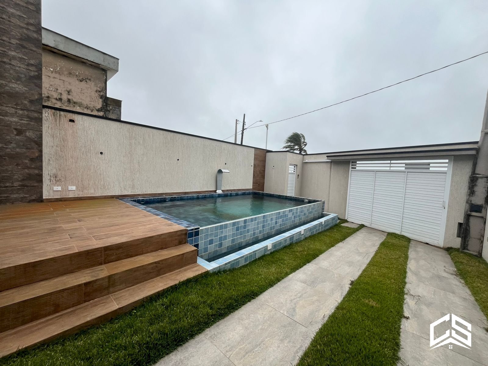 Piscina com cascata e deck
