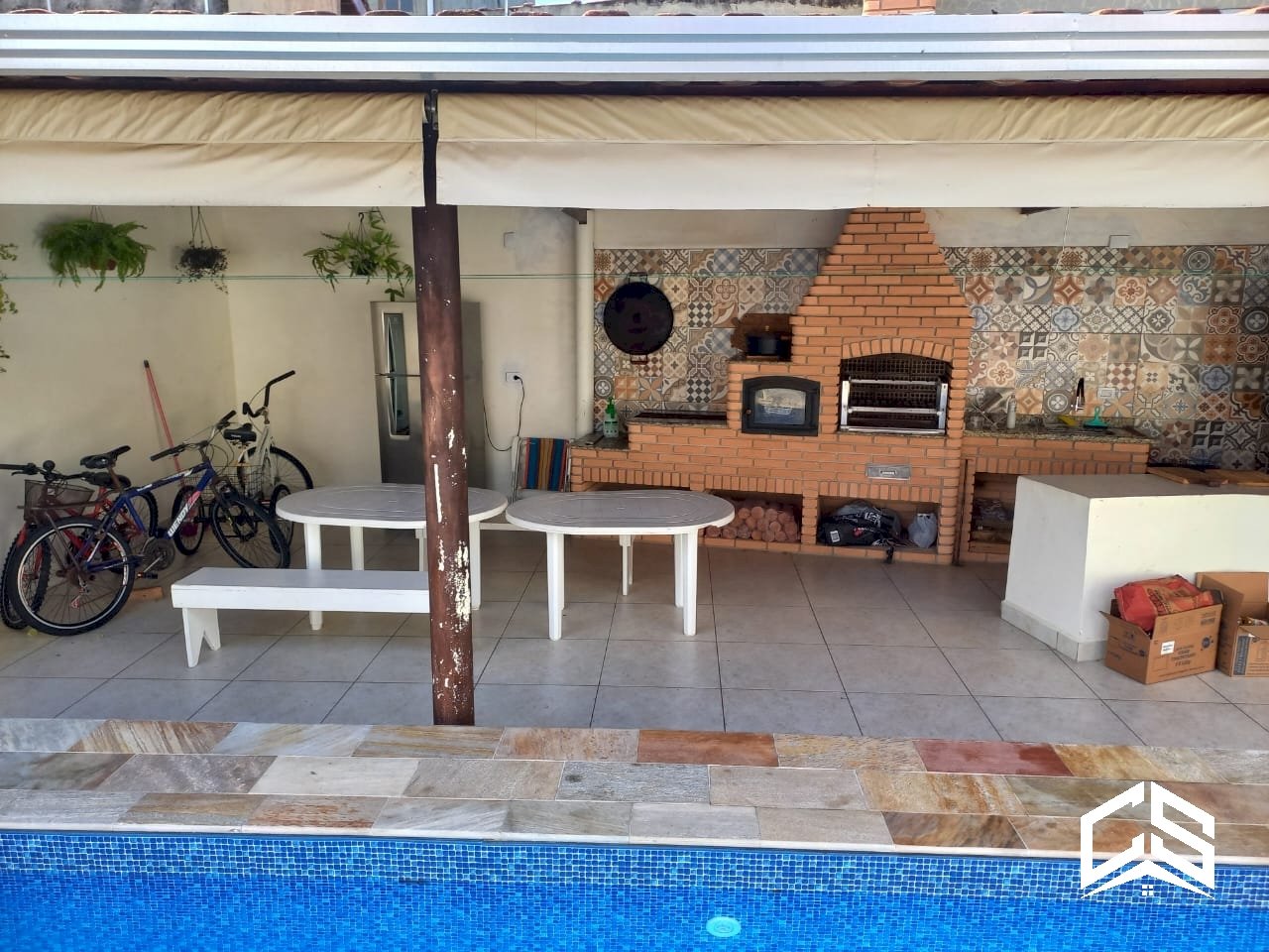 Área gourmet com churrasqueira, fogão e forno a lenha