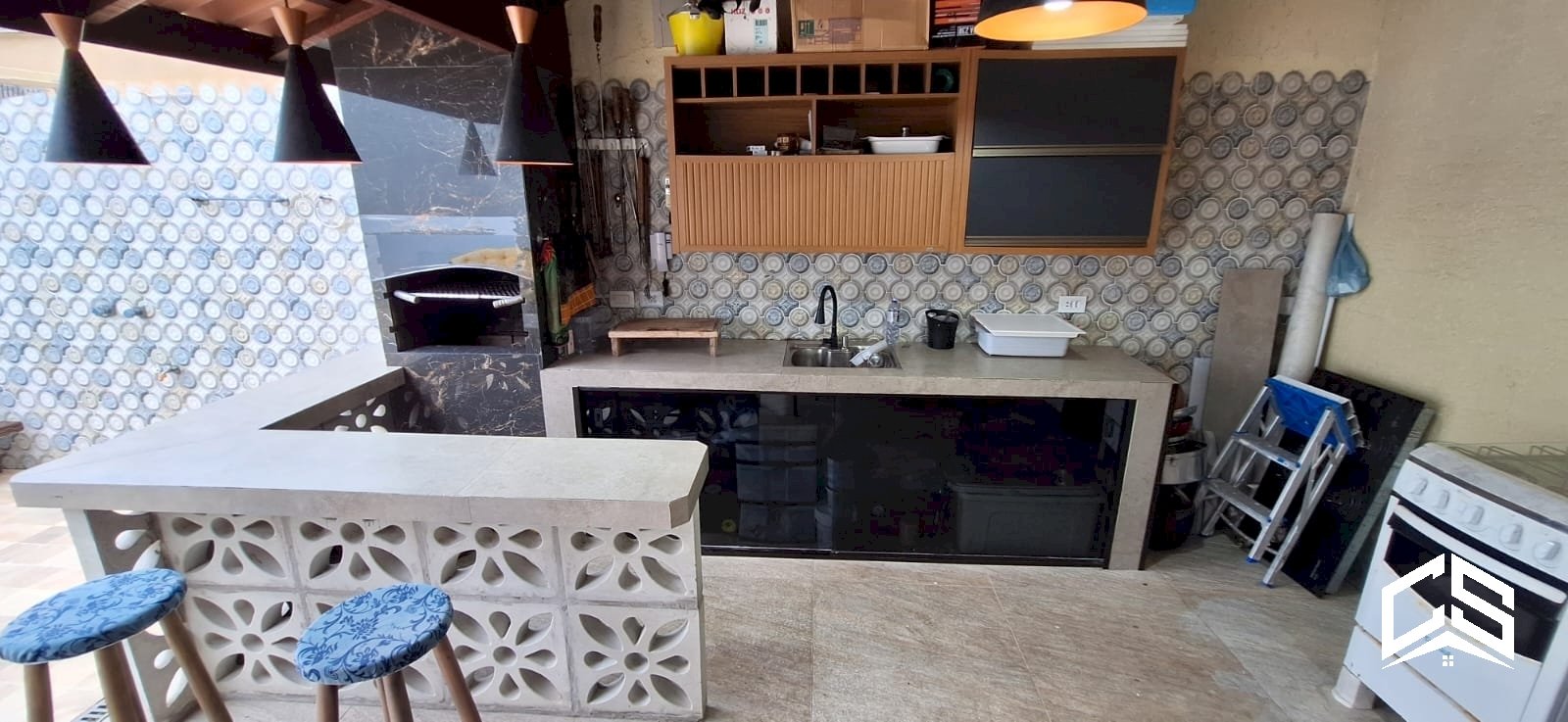 Área gourmet com churrasqueira e banheiro