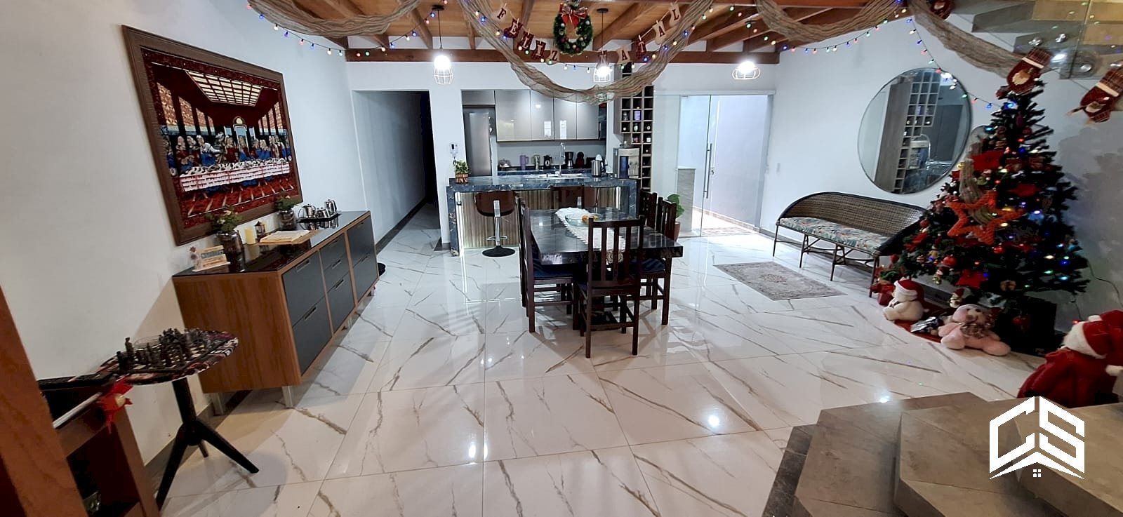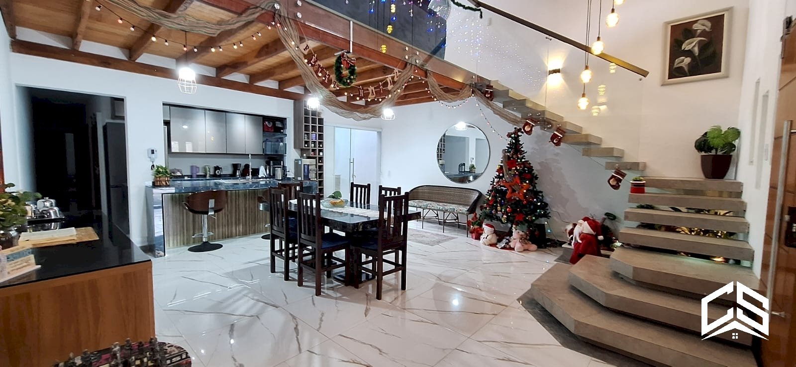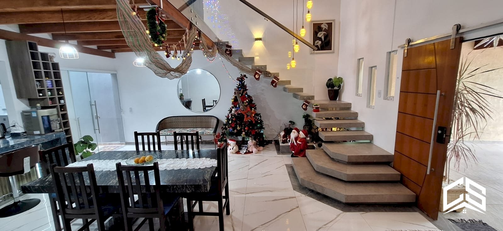 Sala de jantar com pé direito duplo